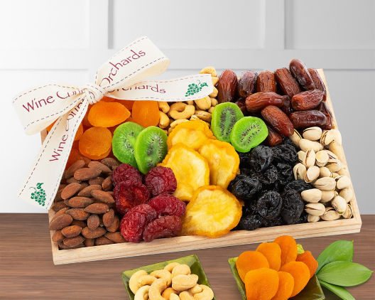 Filled with premium mixed nuts & gourmet dried fruits, these gift baskets & platters are perfect for every crunch on salty cashews, walnuts, and almonds.